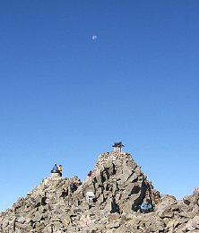 祠が立つ奥穂高岳山頂は、人が2~3人のスペースしかありません。ここが長野県一、日本でも3番目に高い地点に立った感慨に浸るより前に、360度、長野県・岐阜県・富山県の名だたる山々が全部見える、しかも上から見おろすということに感動!