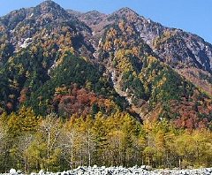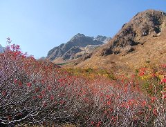 今回は、涸沢の紅葉はほぼ終わっていましたが、途中の標高1000~2000m付近はちょうど見頃で、美しい山岳紅葉を堪能しながら歩きました。紅葉情報 の記事もご覧ください。