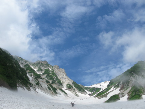 山が好きな人ならば、いつかは登りたい「大雪渓」です。日本三大雪渓のひとつで、最も人気の山が「白馬岳」です。