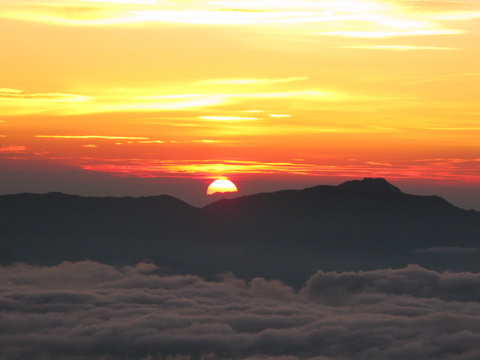 快晴の中雲海の上をご来光を拝めることが出来ました。