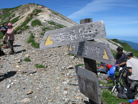 降りていくと、鑓温泉へ行く道と天狗山荘・唐松岳に行く分岐点になります。