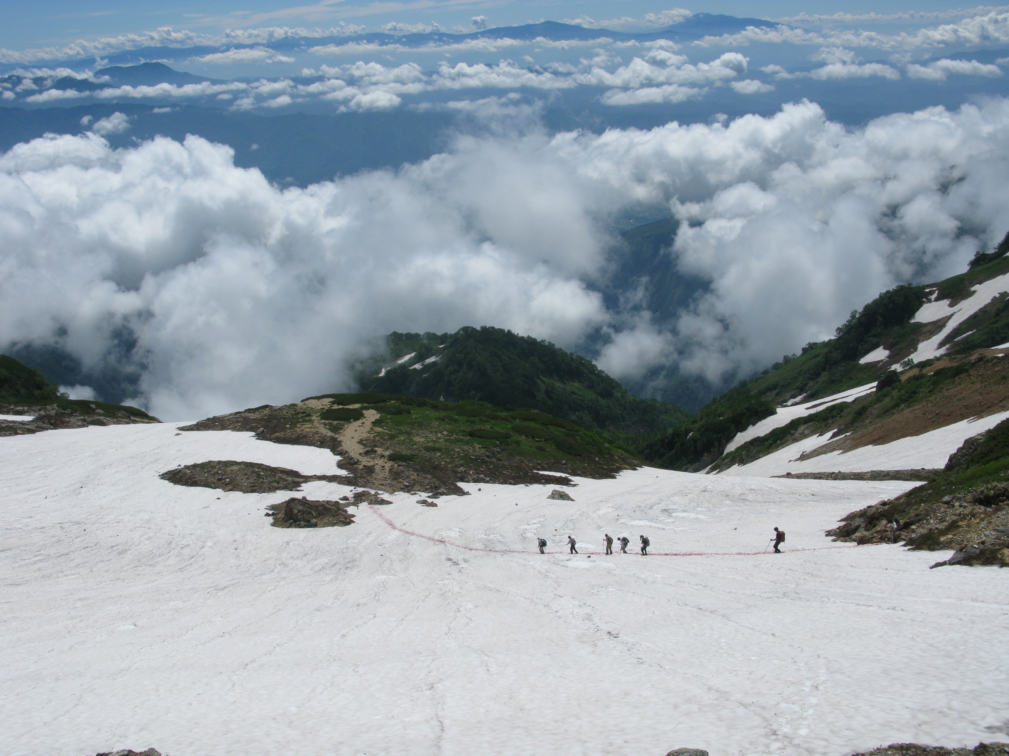 ここからは、何度か雪渓が登場します。下りは、疲れます。