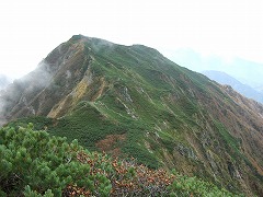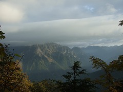 前日霞沢岳に登った人の話では霞沢岳山頂よりもK1のほうが眺めが良かったと言っていました。しかしこの日は期待していた穂高連峰の眺めは見られませんでした。