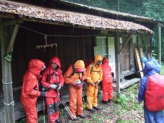 岩魚留小屋は営業してないので軒下で雨宿り。
