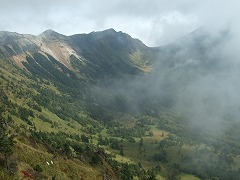 黒斑山から見る浅間山は有名なようですが霧のため印象がほとんどありませんでした。蛇骨岳の手前あたりからずっと浅間山と麓の湯の平の景色に見とれていました。なだらかなラインに魅せられました。蛇骨岳や仙人岳、Jバンドのほうがよかったなぁと記憶に残っています。山登りは天候で印象が左右されますね。