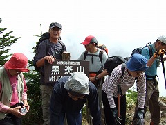 黒斑山山頂で記念撮影しましたが、他にも登山客の方がいて記念撮影の順番待ちのような状況だったため早々に立ち去りました。
