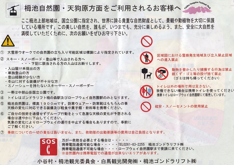 しわしわですがこれです 栂池周辺地図 栂池周辺注意書き