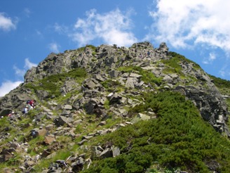 小屋を後にもうひと踏ん張り。この道は、ハシゴ場の前後を注意して下さい。