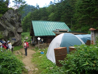 13:35笹と格闘の末、焼岳小屋に到着。(所要時間は2時間00分)