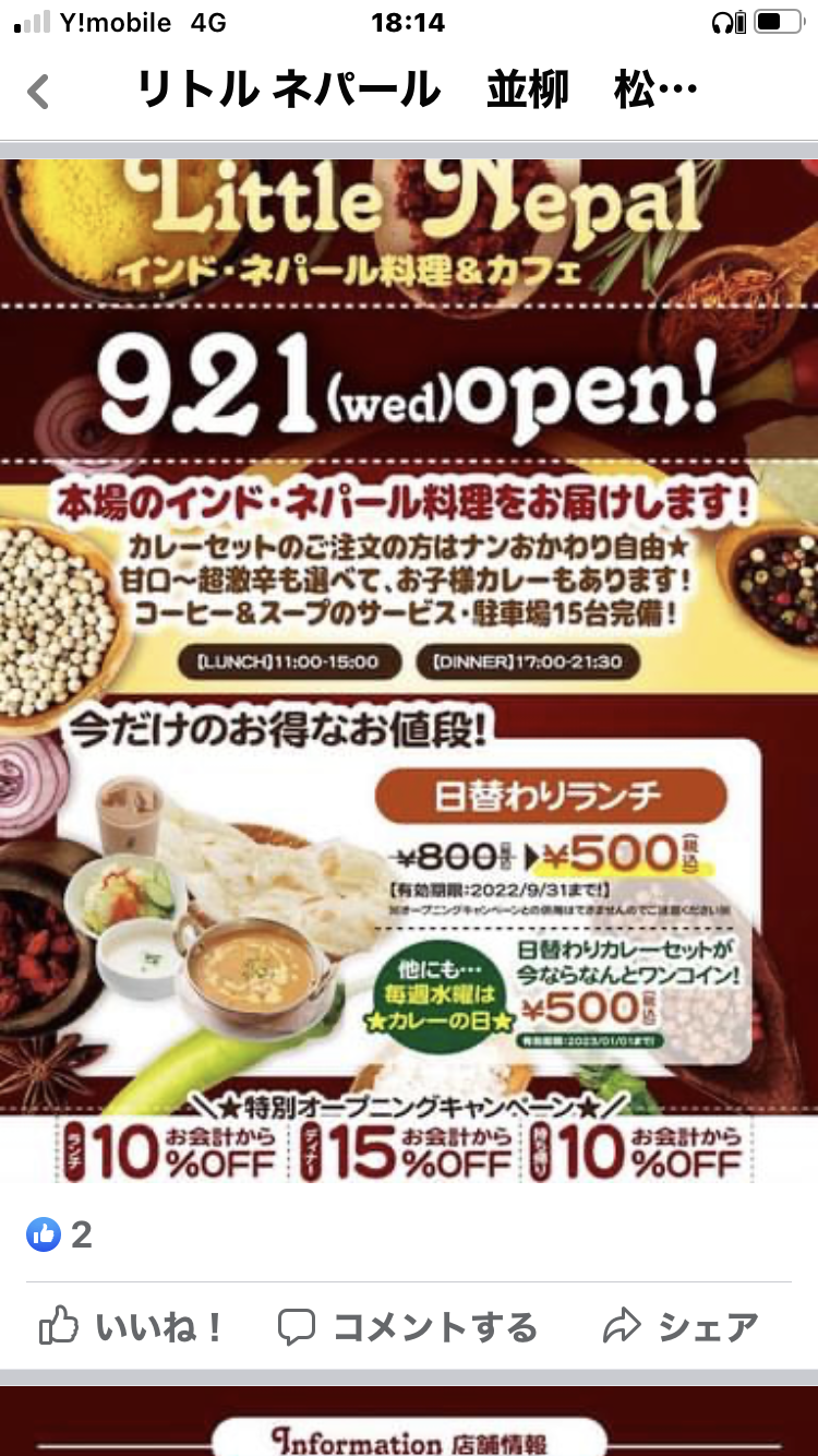 新开张的一家尼泊尔咖喱店 周二, 11月 8, 2022 ♥16 最近,一家由尼泊尔老板和厨师经营的正宗咖喱店“小尼泊尔”,在松本市并柳小学附近的团地住宅区入口处开张了。 一进店就可以看到宽敞的店内: 还有舒适的日式榻榻米座席,窗外是一处水池,远方是阿尔卑斯山! 几种咖喱和脸大小的新鲜馕饼,冒着刚出锅的热香气。咖喱中辣黄虾和咖喱绿菠菜,色香味俱全! 虽然是咖喱店,但可以自由更换的卷心菜丝沙拉和鸡蛋汤都很清淡,肯定受女顾客的喜欢。 各种正宗调味料、尼泊尔风格的店内装饰 营业时间 11:00~20:00(周三休息) 地址:松本市并柳 4-13-4 TEL 0263-25-9511 从松本车站开车15分钟左右就到! Tweet