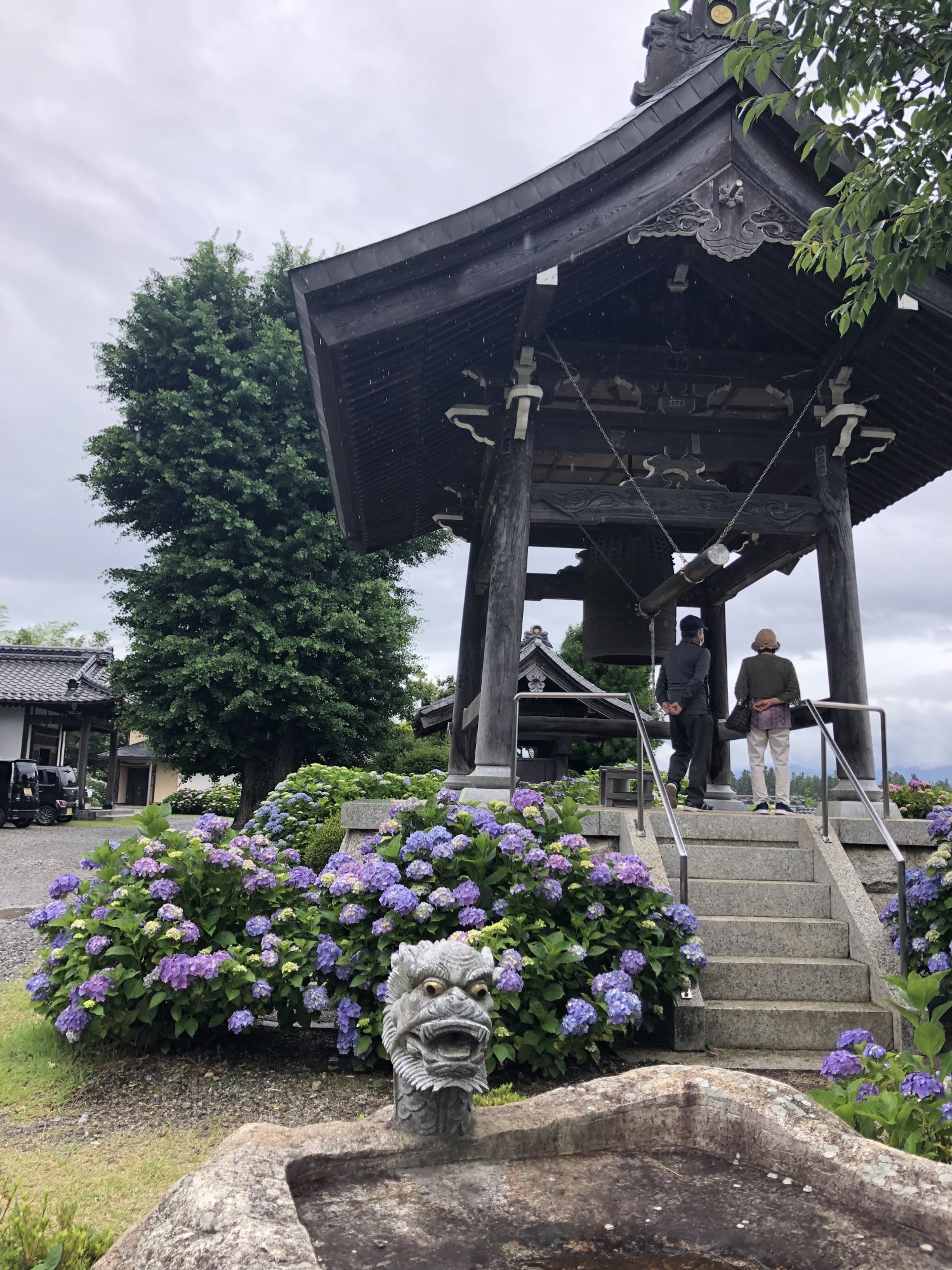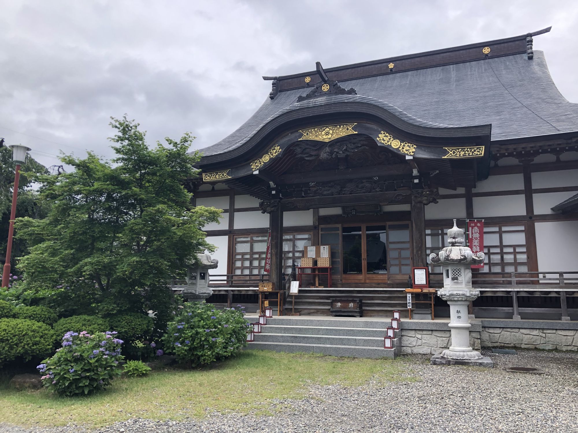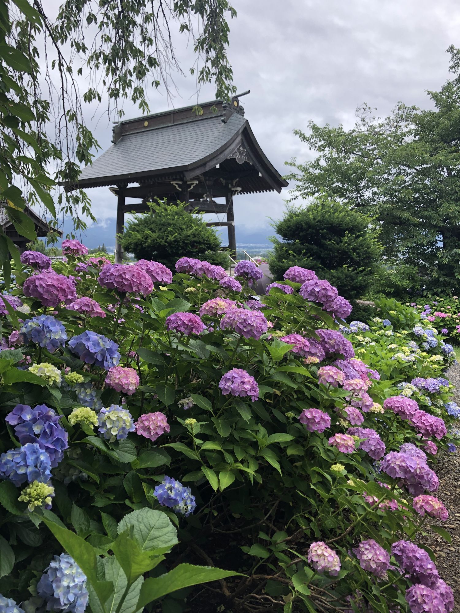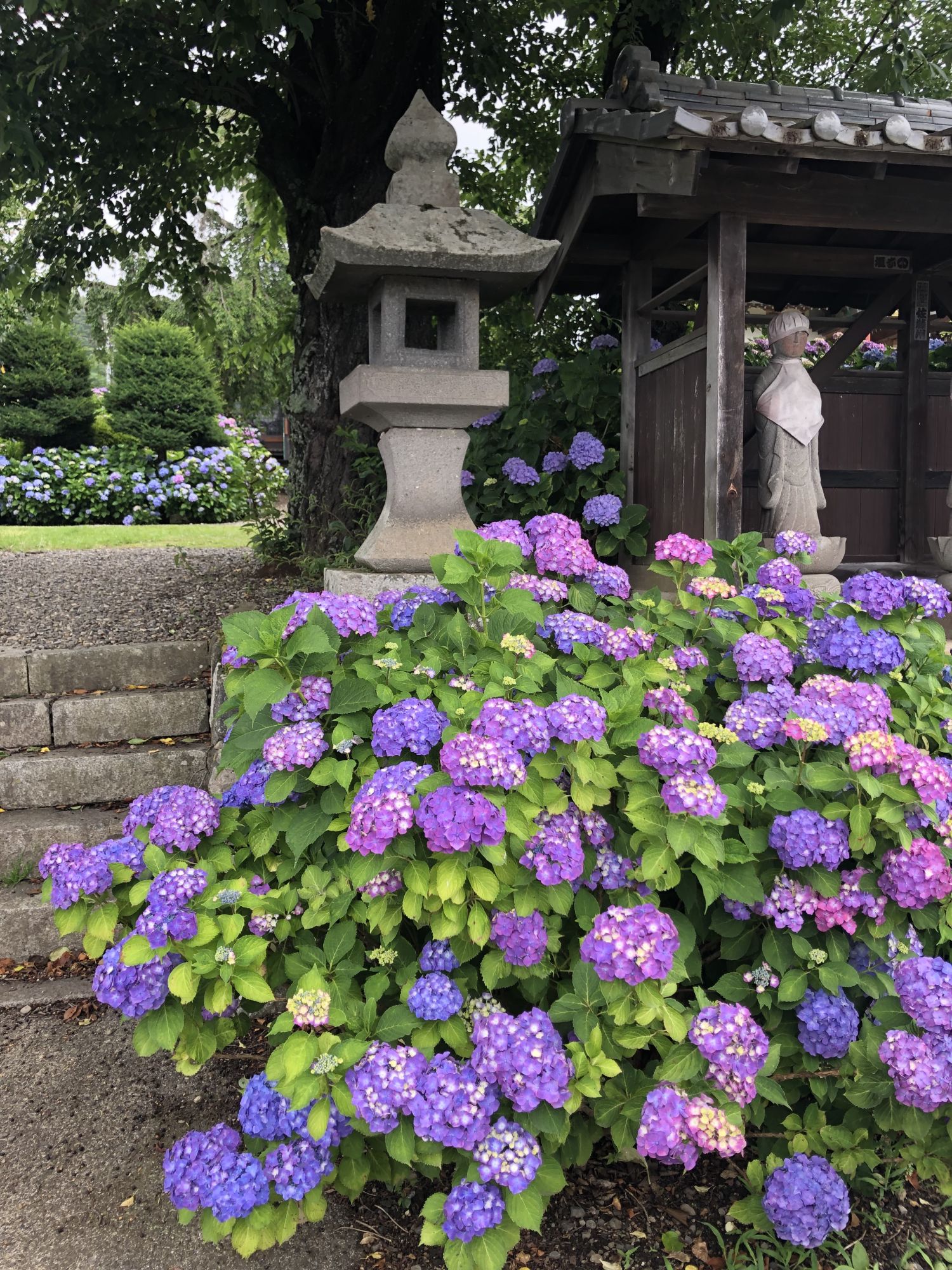 松本市有两座著名的寺庙,分别是法船寺和弘长寺,它们都以美丽的绣球花而闻名。先去看看法船寺。