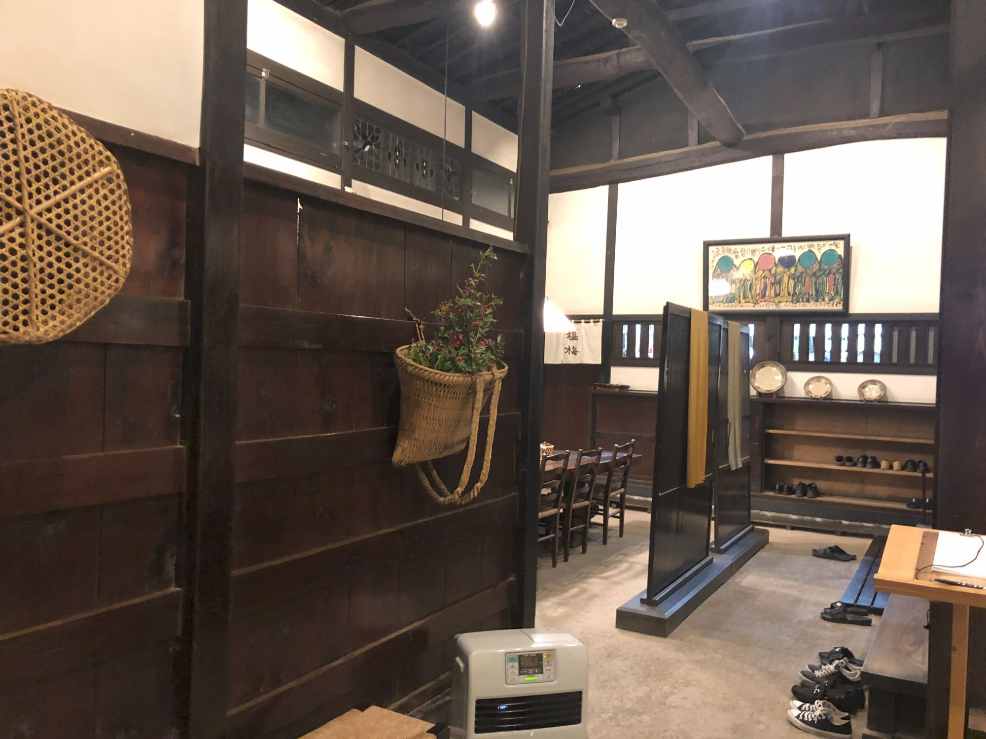 连桌子上的摆设有年头的木制餐具,与古屋浑然一体,自然、朴素。