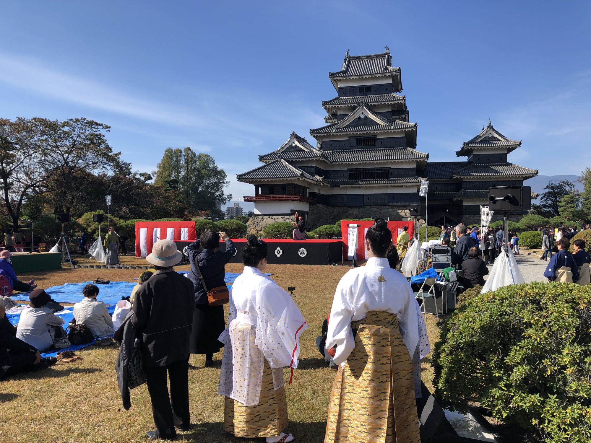 一年一度的松本市民文化节 其他 周一, 11月 4, 2019 ♥57 11月3日,文化节。各地都在搞各种各样的活动,古城松本也不例外。 松本城楼前吟诗会 剑舞赛 小武士们准备上阵 还有菊花展 姹紫嫣红 和服美少女 盆景菊展 茶道 舞蹈 车道变步行街 苹果糖葫芦 章鱼烧烤 附近神社的红叶 还有爆米花 Tweet