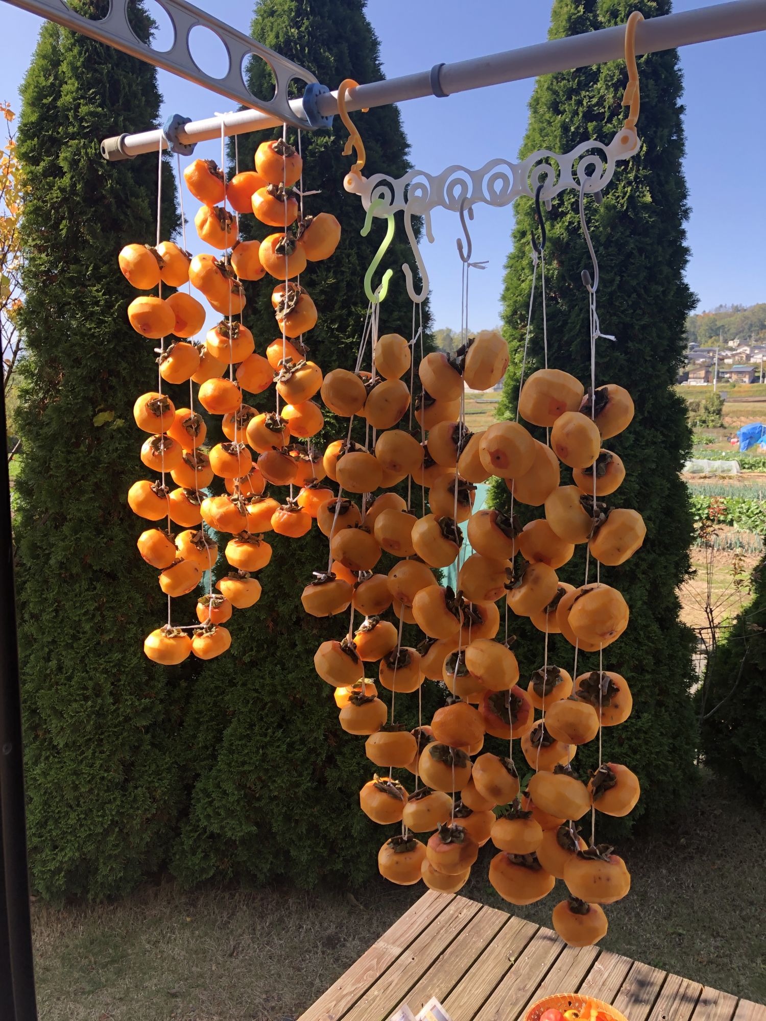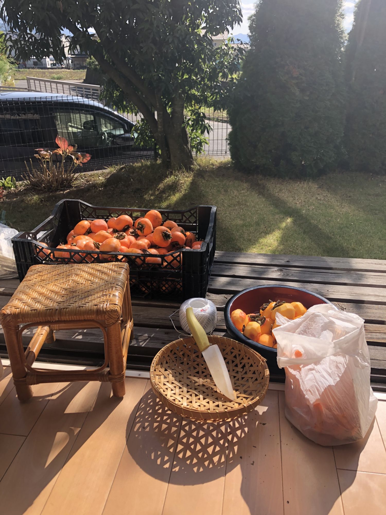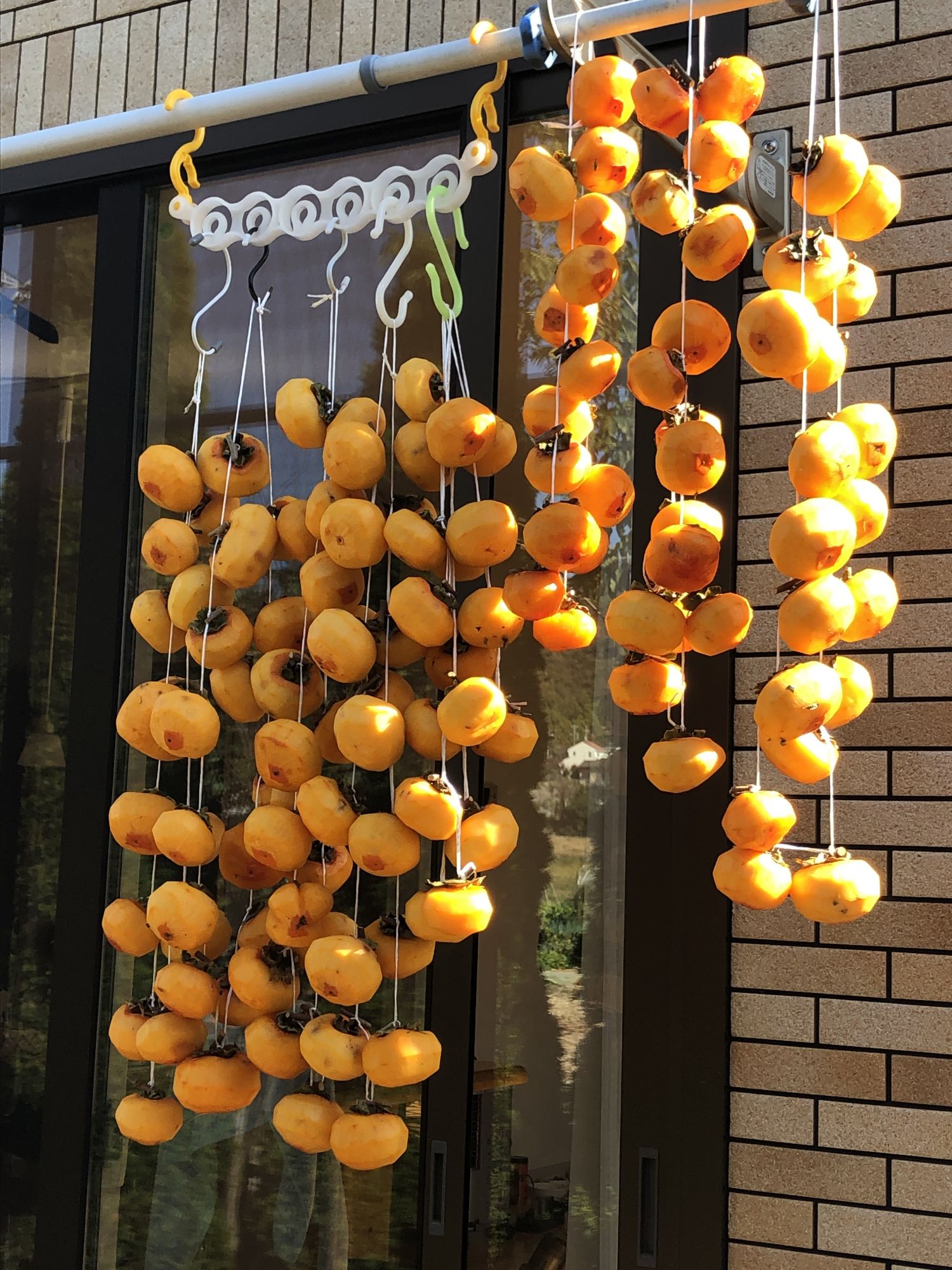 今年的自制柿饼 其他 周一, 12月 7, 2020 ♥41 10月下旬,一位日本朋友说今年自家的涩柿子丰收了,一下送来了一大筐!数了数,上百了! 立即削皮儿、拴绳儿 不到两个小时,一百多个,就被挂成了半个窗帘,为什么这么快?因为每个从树枝上剪下来时,都故意留了一点儿硬枝 两周后,渐渐颜色变深,在没变硬之前,拿下来,摆到纸盒里 再过一个星期左右,瞧,自然变白!做成了,天然自制柿饼♬ Tweet