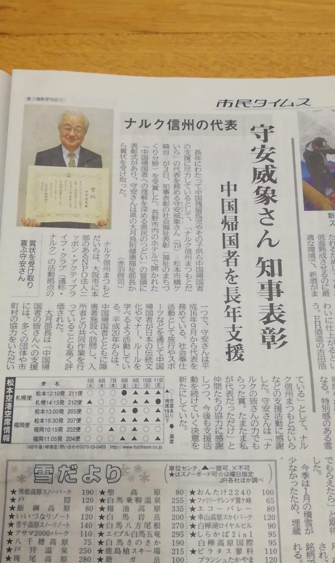 在日本信州过春节 其他 周一, 2月 11, 2019 ♥73 从东京请来的专业演奏 其他地区归国者的独奏 合奏 其他地区的日本舞蹈 走到客人前跳跳 这俩口自从练习跳舞,不吵架了 常年支援中国归国者的NPO 支援团体受长野知事奖的报道 日中友好协会的春节茶话会 还有专业茶师讲解中国茶 吃的当然是中国大包子 赠一束鲜花表表 作为孙子辈的代表,对支援团体表谢意 这对夫妻演得最来劲儿 服装都是各自从国内买来的 中国东北的大秧歌!跳上才叫过年 2月5号,春节的大年初一。虽然各种原因不能回国过大年,但即使在国外,也照样过得热热闹闹,喜喜洋洋!! Tweet
