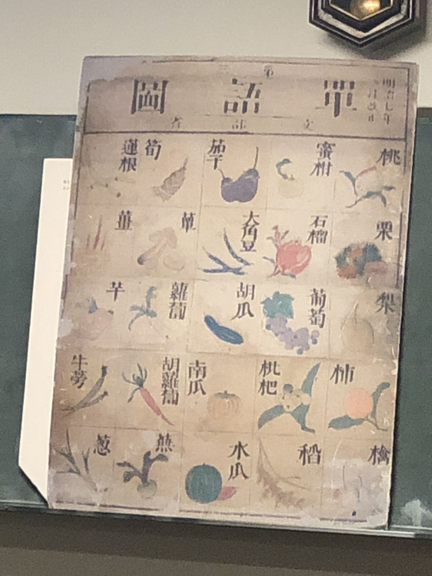 当时用的课本、书桌。令人吃惊的是,一百五十年前,同一教室的书桌高矮就不一,考虑到孩子们的不同身高!