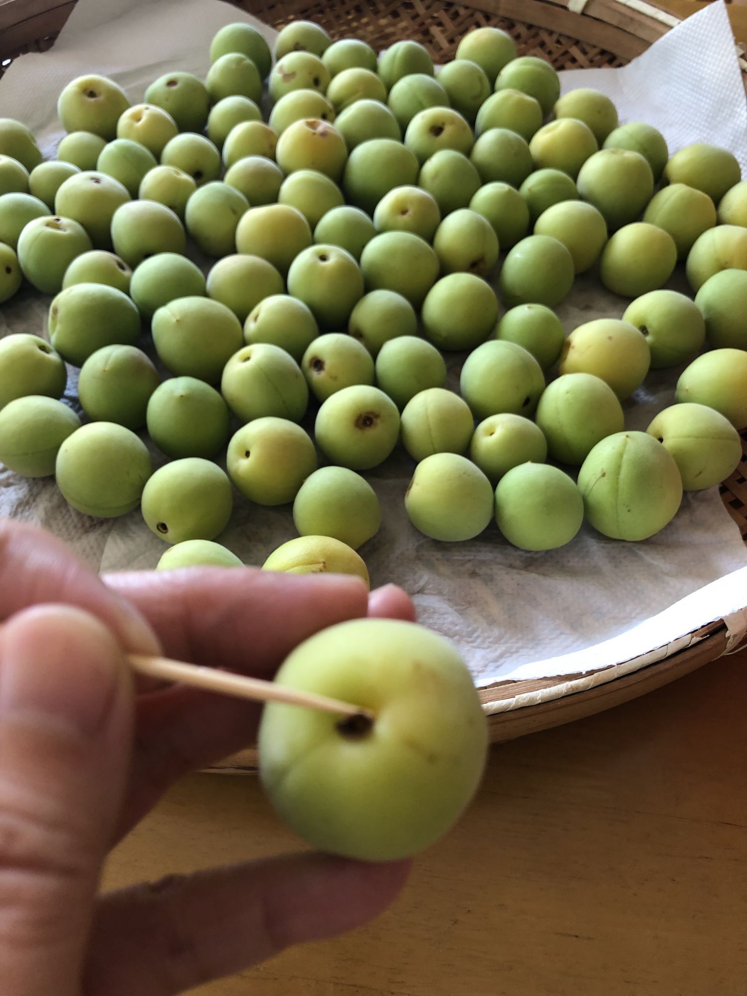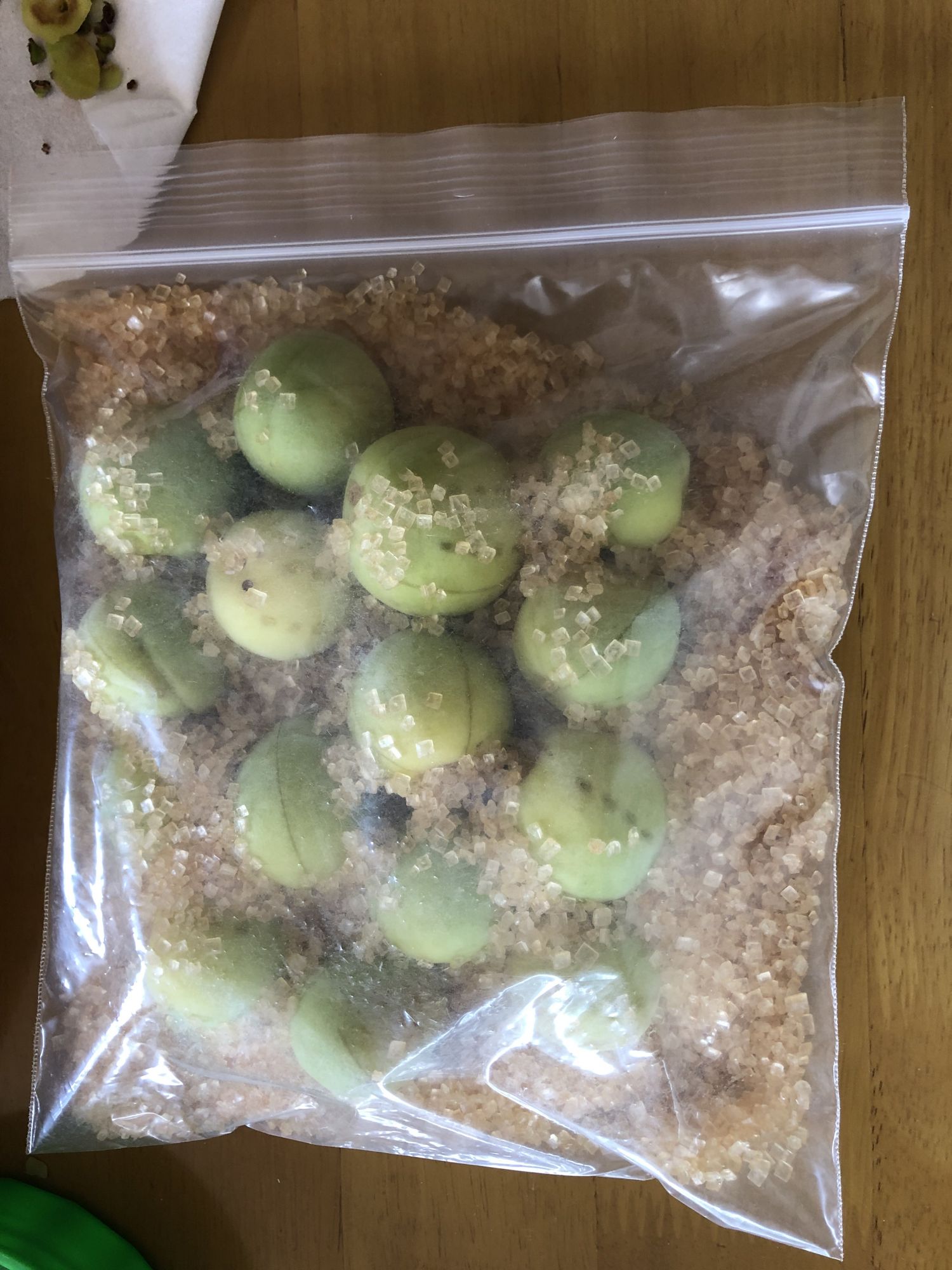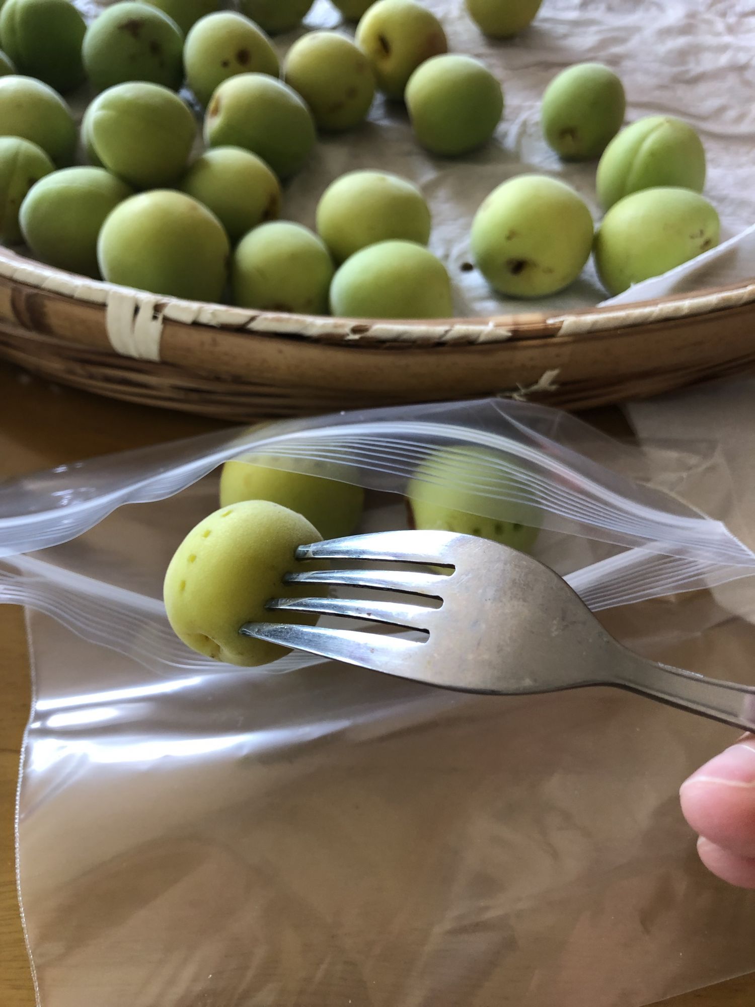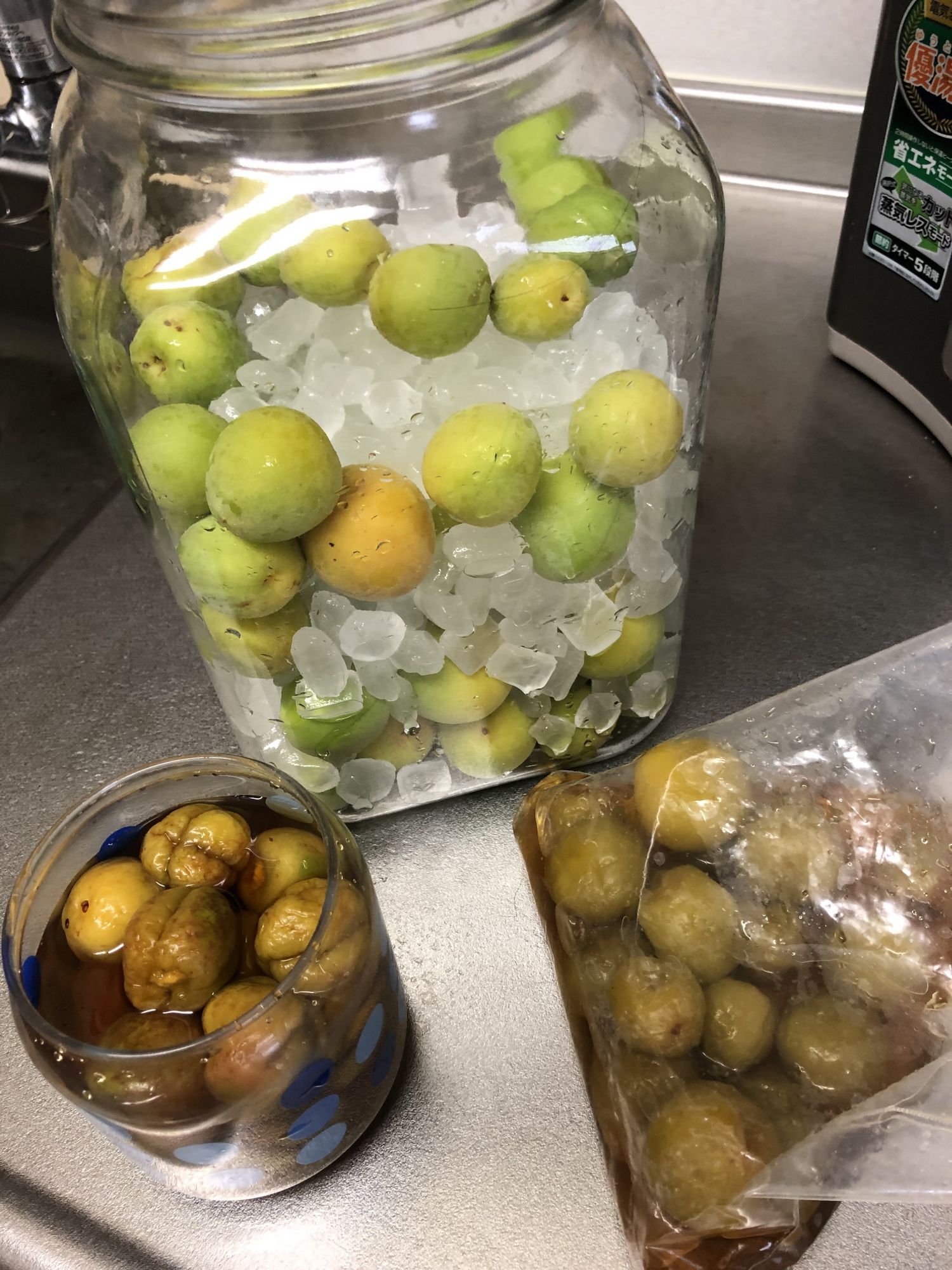 梅子成熟了 其他 周日, 7月 7, 2019 ♥60 梅雨季节,梅子成熟。日本各商场都有腌制梅酒、酸梅干、梅饮料等的专柜。 今年家院子里的梅树结了不少梅子,冒出念头想尝试一下腌梅饮料。 实验结果是,先冷冻后加糖的做法最快、容易进味儿。原汁加冰块、碳酸水后,味道好极了! 虽然还是青的,但可以摘了 家院子里的一棵梅树,结了不少呢 泡在清水里除去涩味 准备好两个玻璃瓶和一冰糖袋 先用食用酒精擦瓶内 天气好, 除掉接口处异物 和冰糖一起装进瓶里 尝试一下另一种做法:用叉扎些孔 和粒状蔗糖一起放进塑料袋 揉数次 再试试先冷冻,后加糖 第二天,各自情况不同! 拿出后两种比较一下 加冰块儿、碳酸水 Tweet
