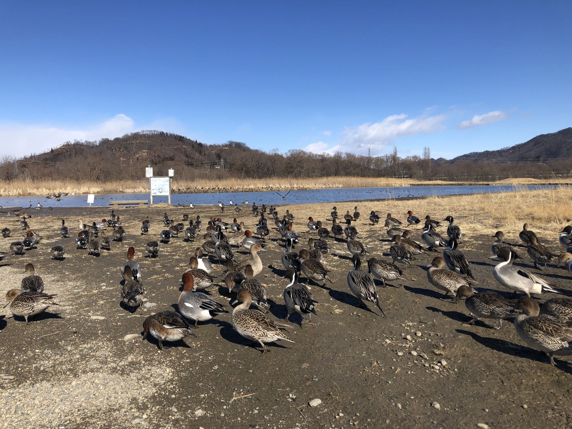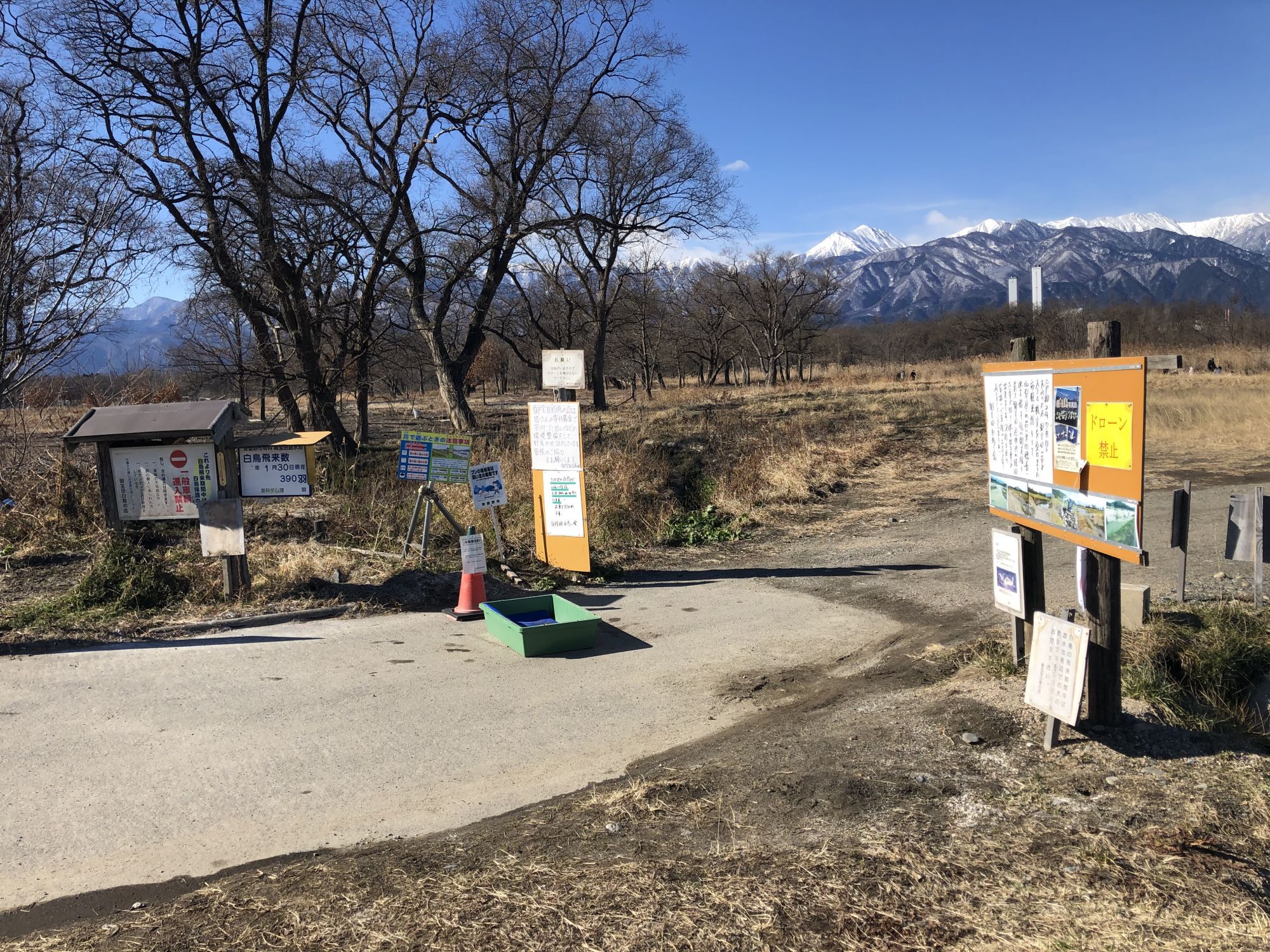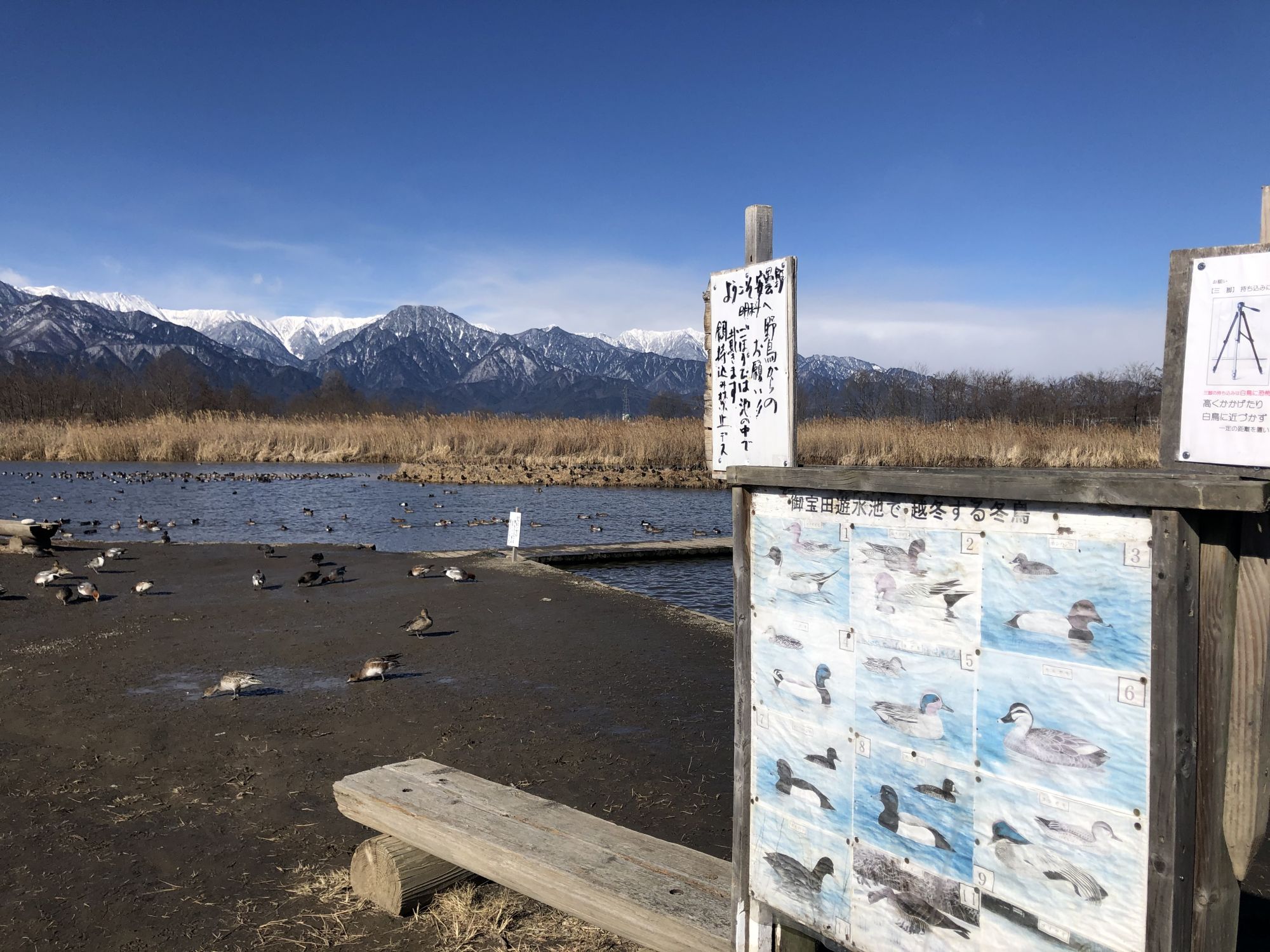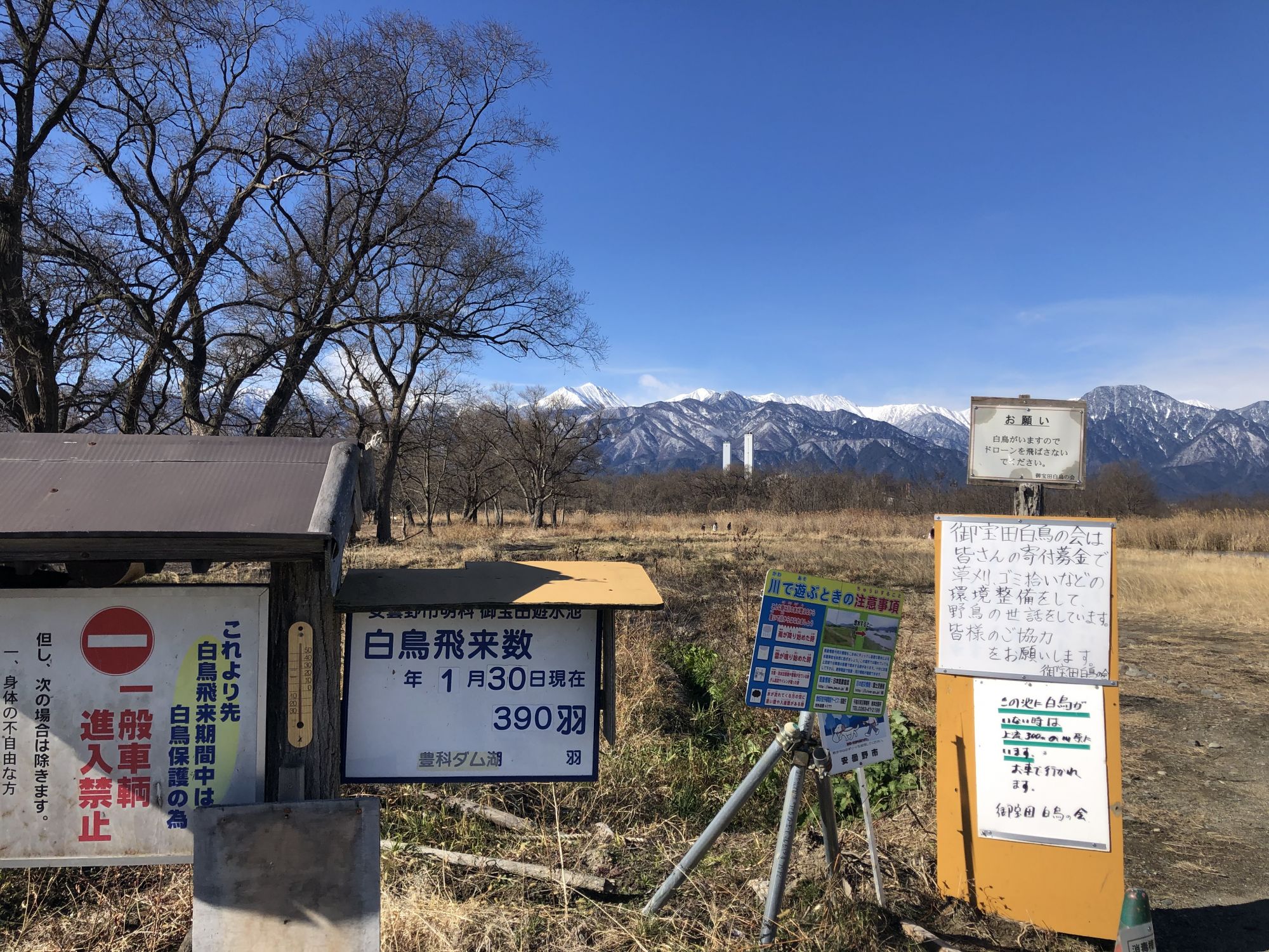 松本附近最有名的一处白天鹅飞来处在安昙野市明科中川手的御宝田遊水池,从松本市中心开车大概半小时左右。
