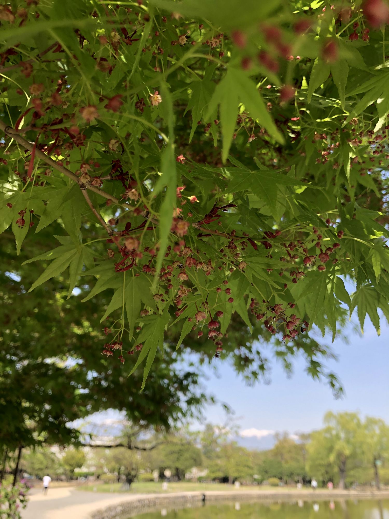 可今年大门紧闭,只有护城河的两只天鹅亦在闲游。樱花已溅落,枫树花尚开。