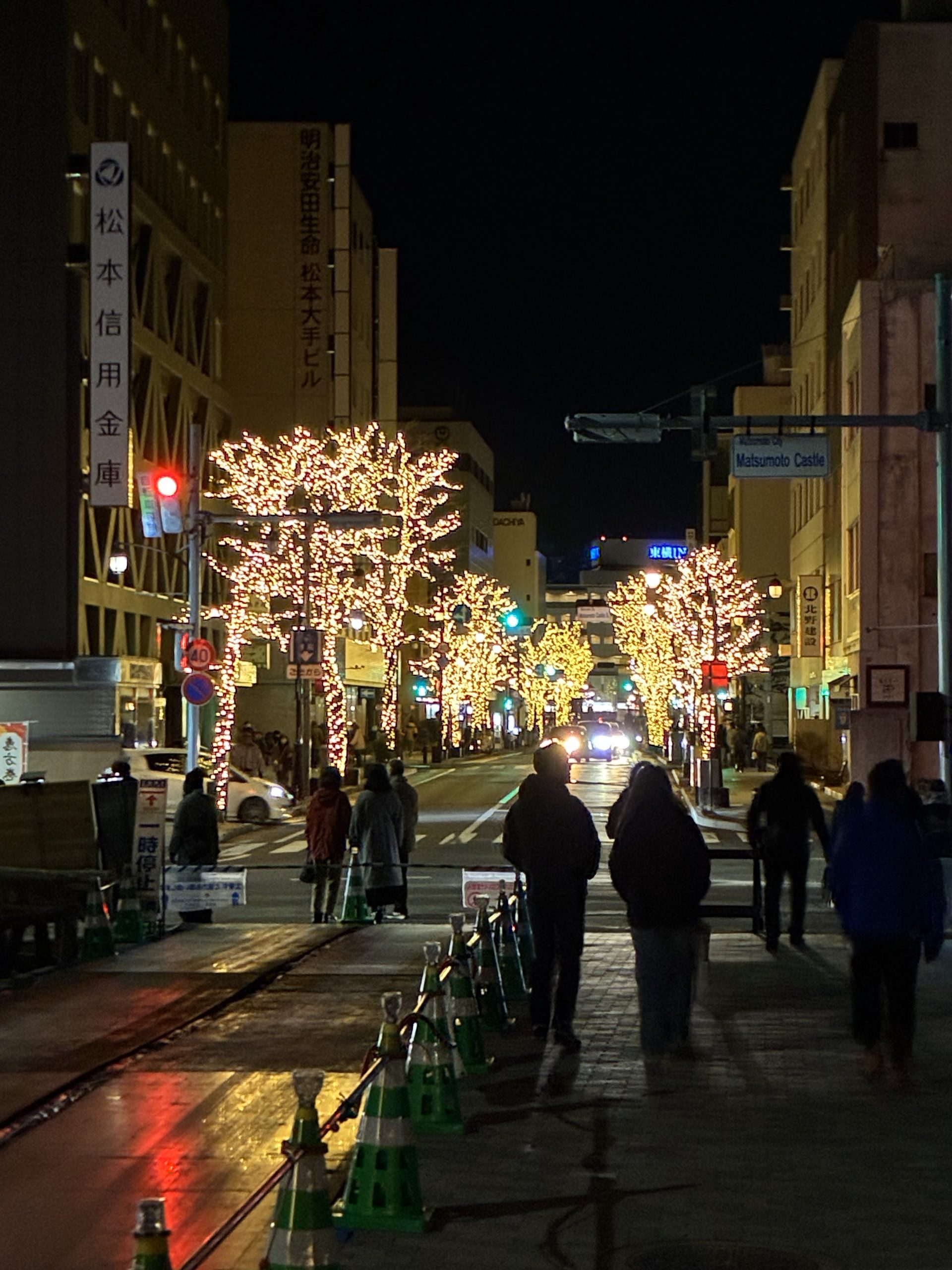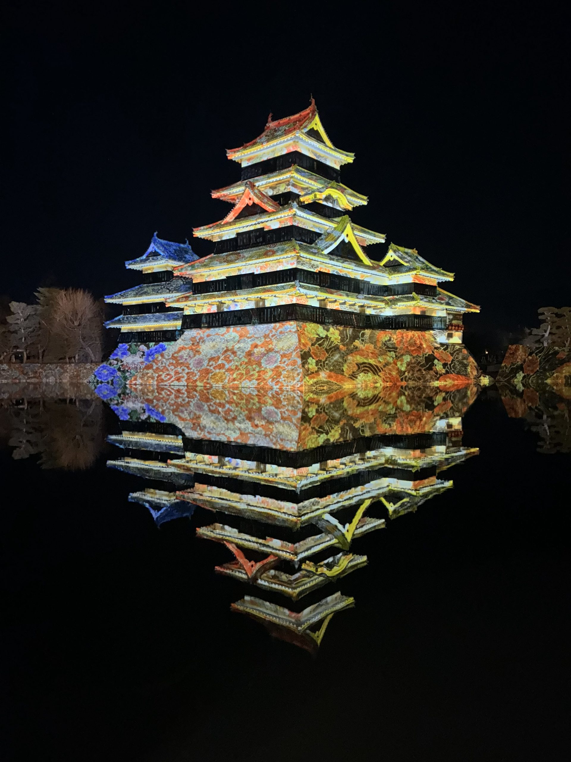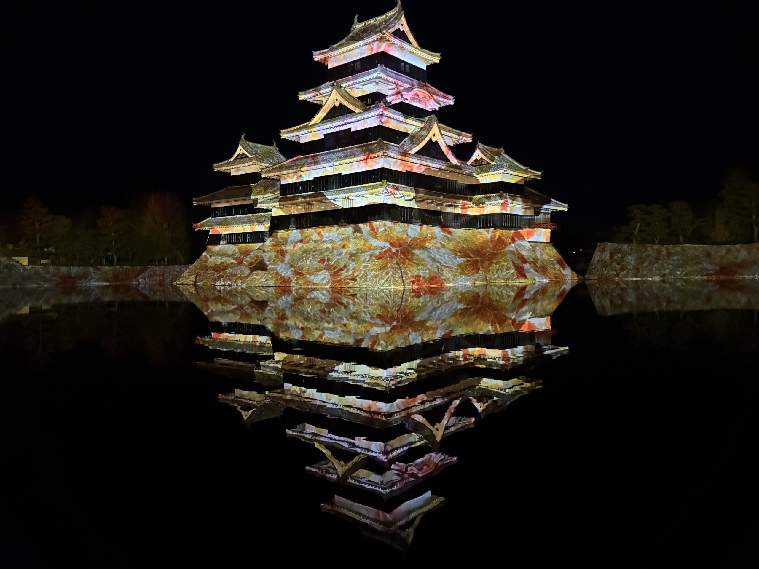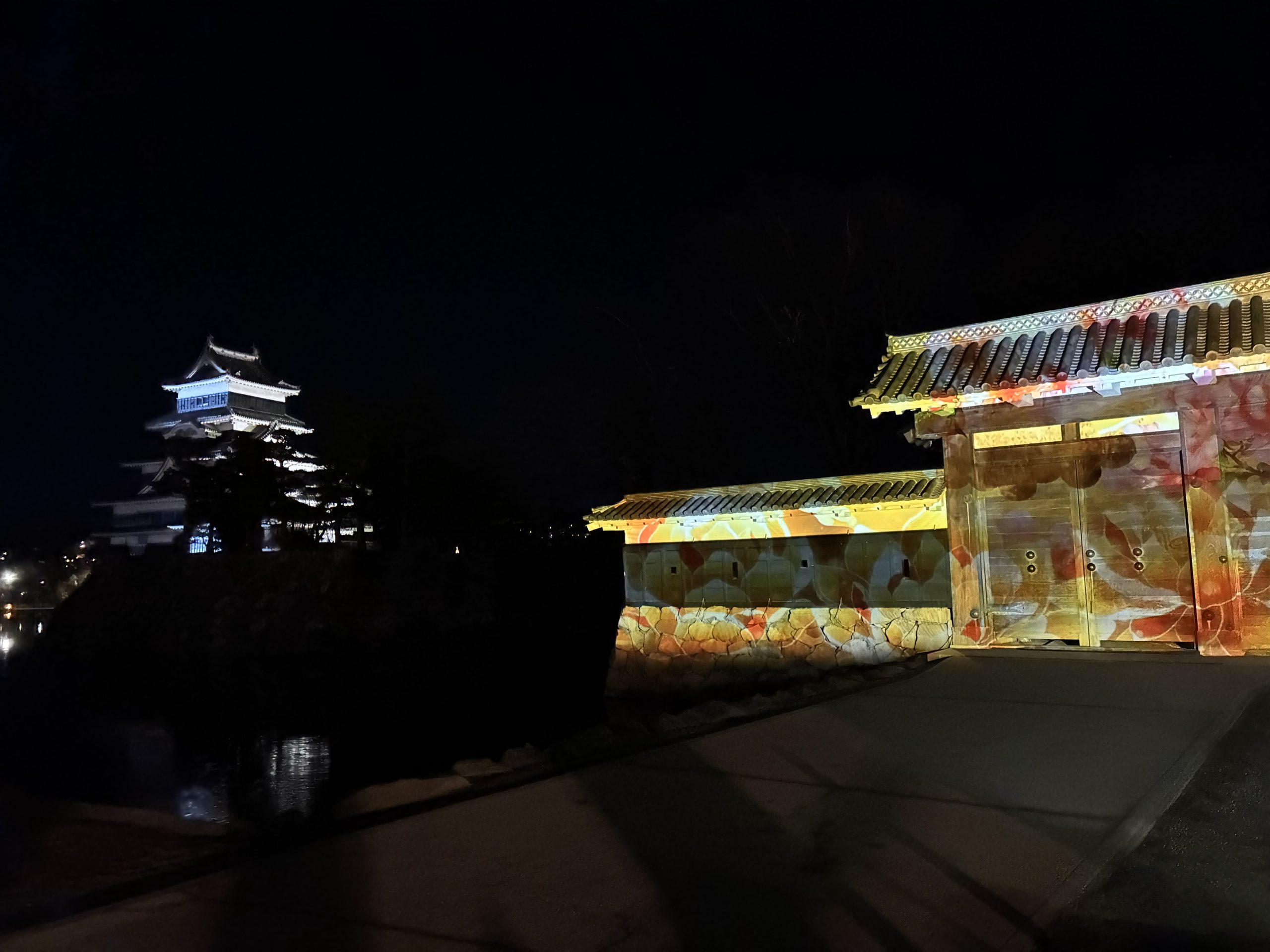 每年 12 月中旬至翌年 2 月中旬,国宝松本城会在夜色中化身为巨大的光影舞台,结合投影映射、音乐与城下町灯饰,打造出独一无二的冬夜景观。