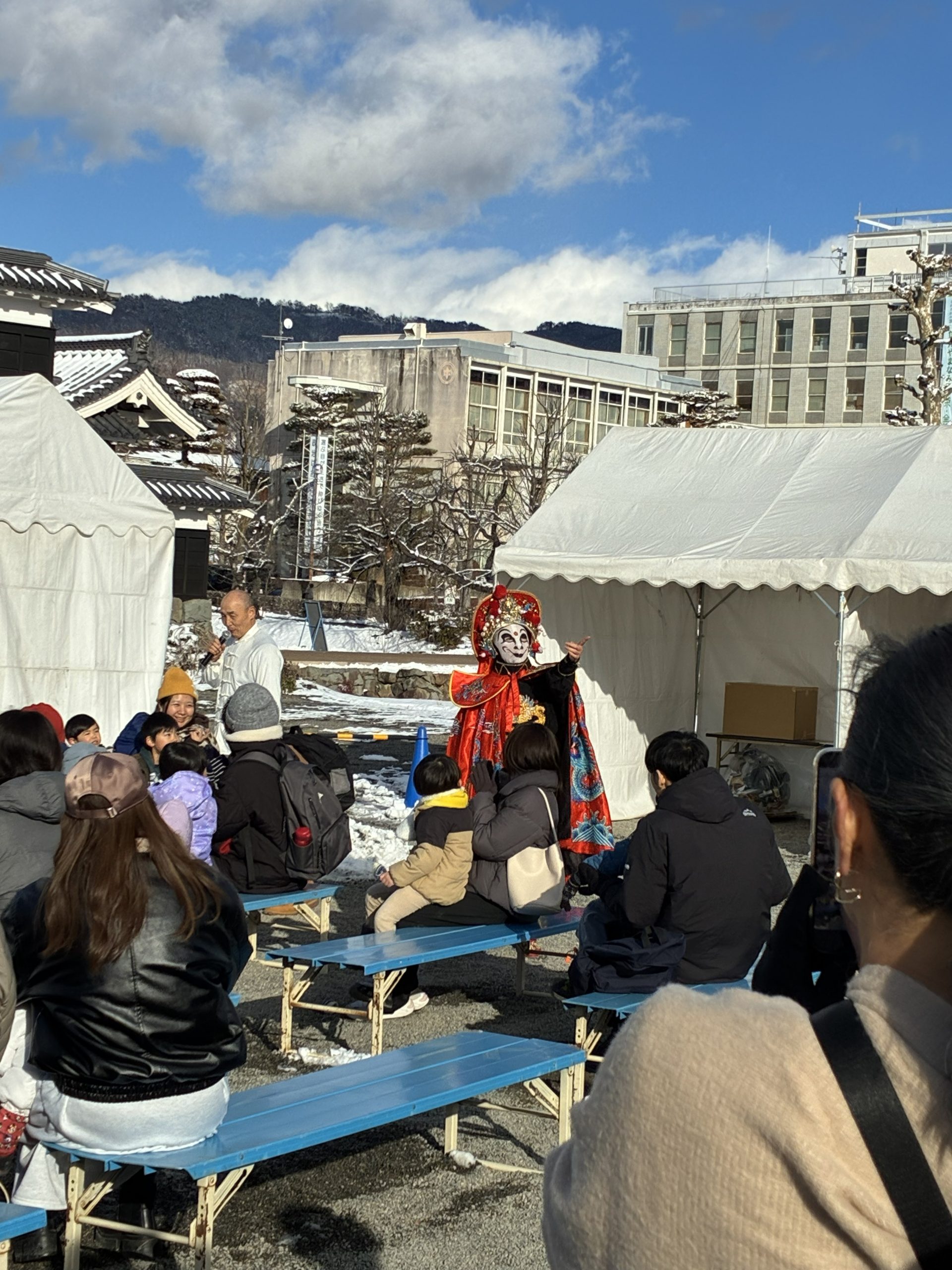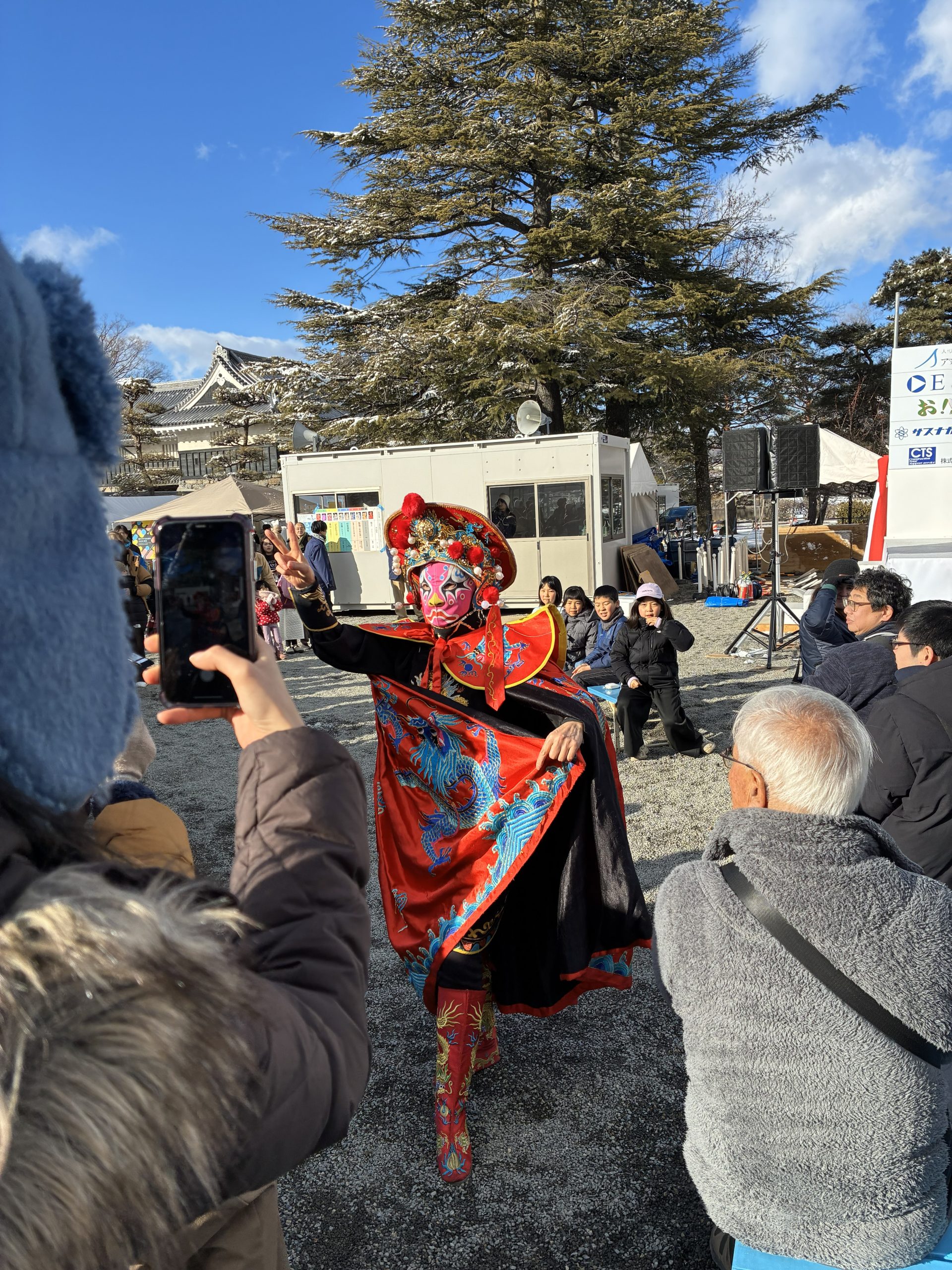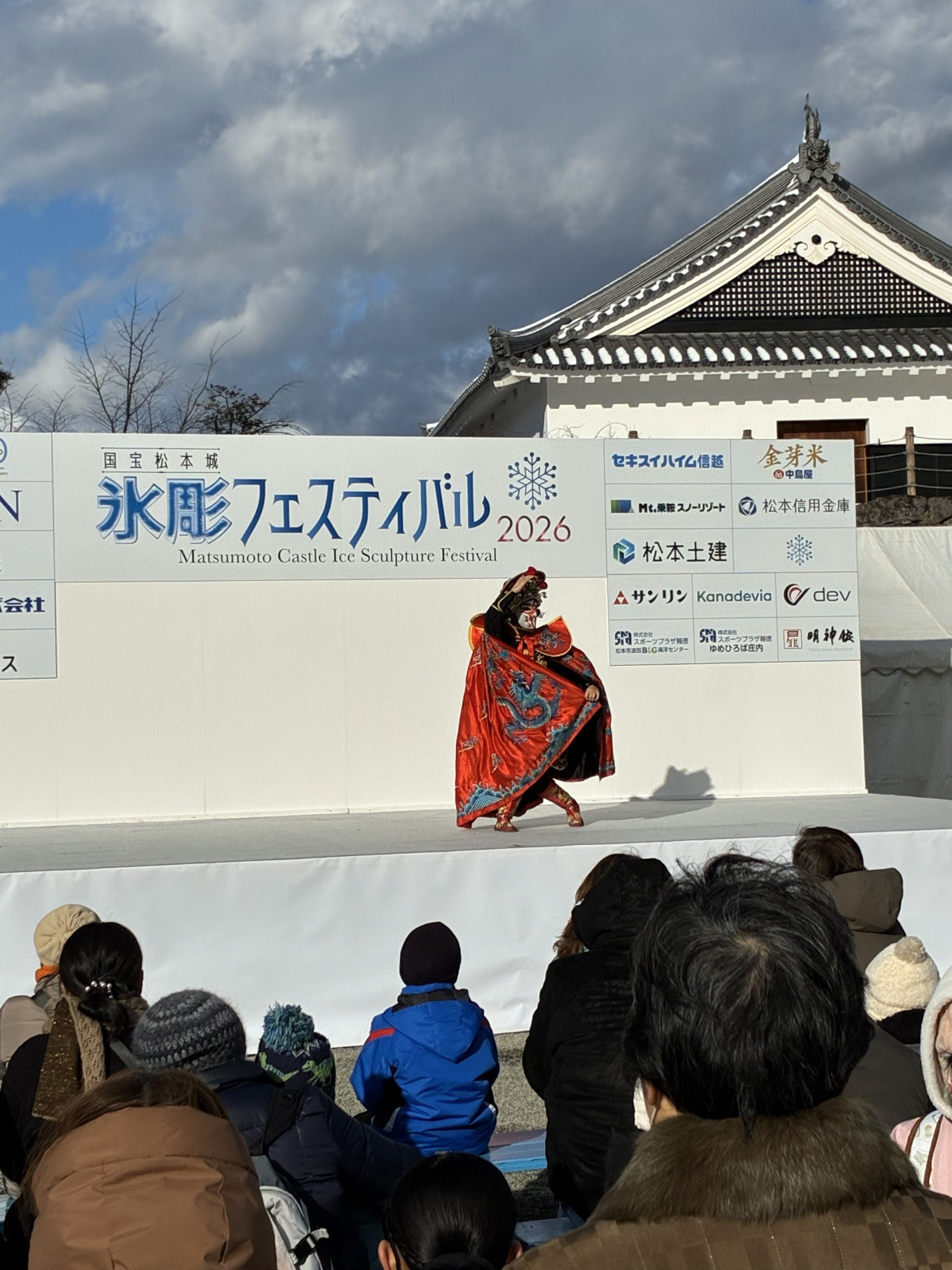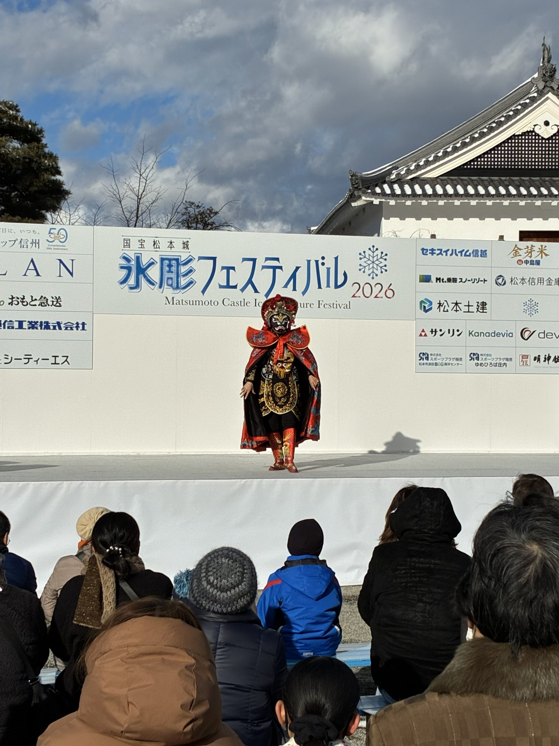 松本所在的长野是日本有名的寒冷地带。这几天有寒流,最低温度到了零下八、九度。但在这严寒之际,却有着独特的活动。首选的当属松本城冰雕节(Matsumoto Castle Ice Sculpture Festival)。