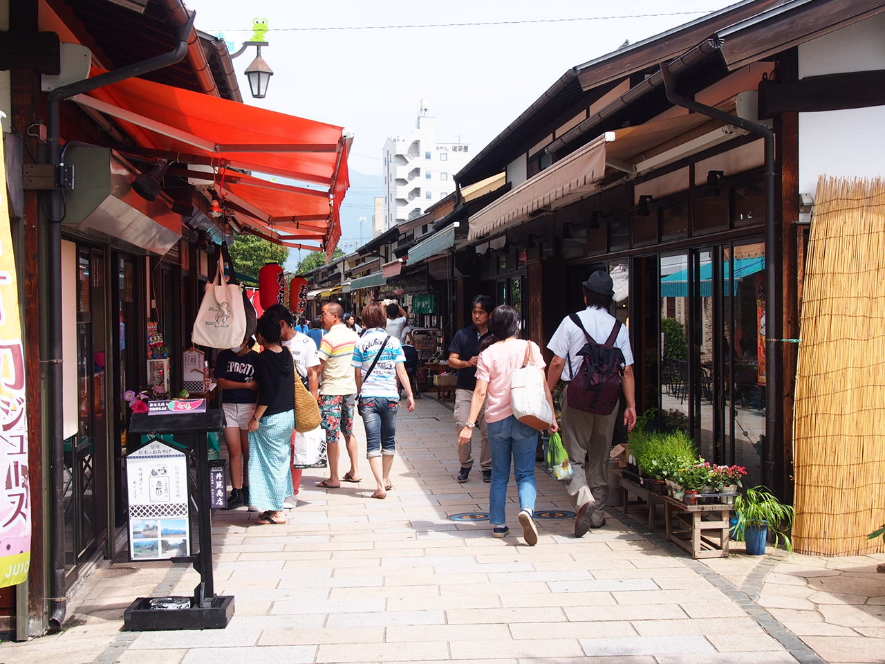 绳手街离松本站步行约10分钟,松本城步行约5分钟距离的地方。商店街上充满了个性商店。沿着女鸟羽川的商店街,就像绳索般的漫长河堤,因此也被称为「绳手」。